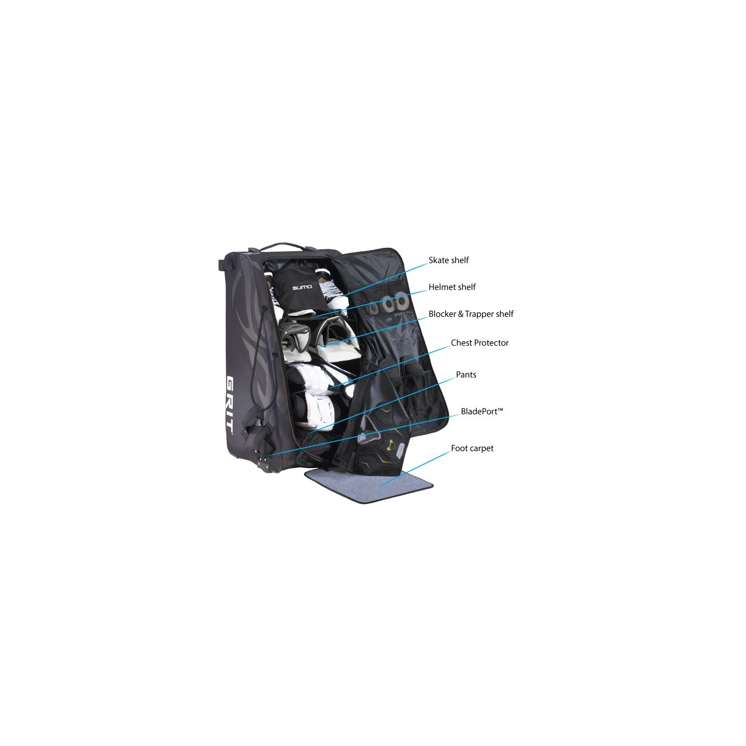 En af de bedste målmandstasker på markedet. Bygget omkring en stålramme og med materiale i robust nylon for slidstyrke. Gode løsninger i tasken til opbevaring af udstyr og mulighed for at fastgøre benskinnerne på ydersiden ved transport.